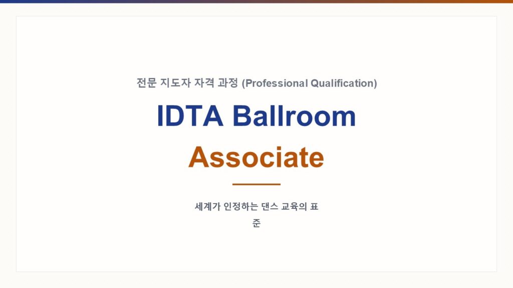IDTA(국제무용교사협회)**는 전 세계적으로 무용 표준을 설정하고 전문 교사를 양성하는 권위 있는 글로벌 자격 인증 기관입니다.