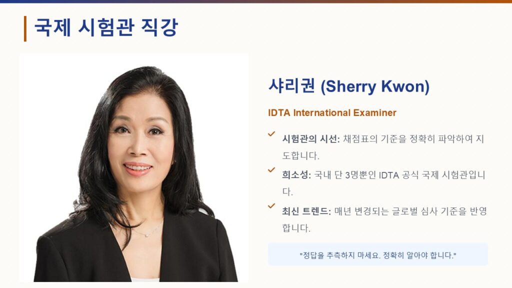 특히 한국 내 단 3명뿐인 국제 시험관 샤리권 원장이 직접 진행하는 온라인 강의는 합격률을 높이는 핵심 전략과 혜택을 강조합니다.