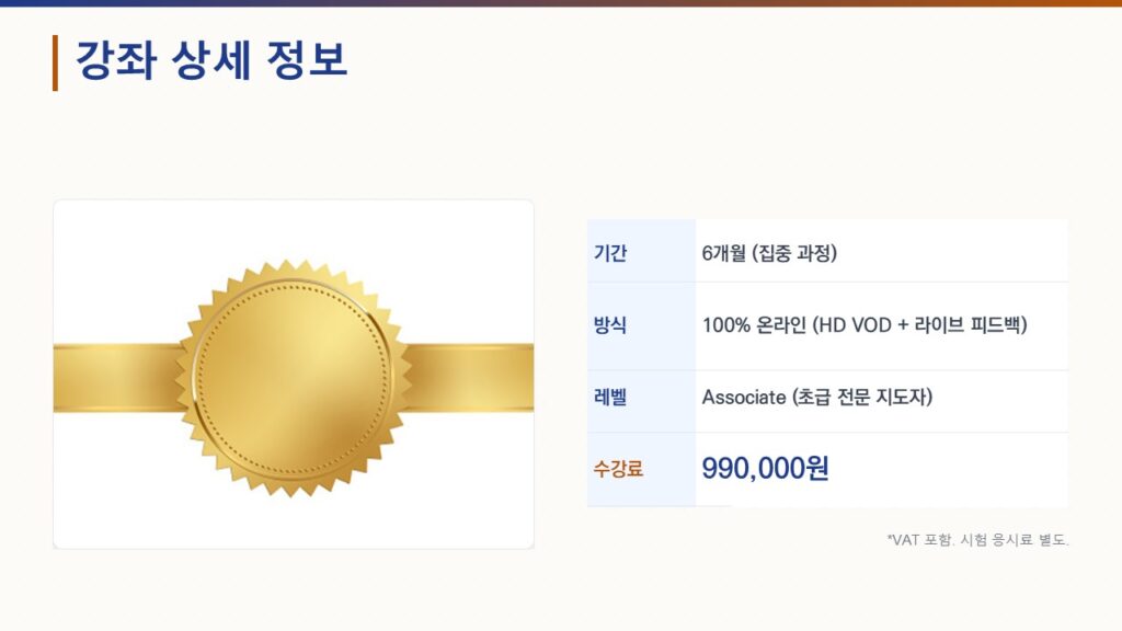 1. 총 수강료: 990,000원 (6개월 과정,VAT포함) 금액임